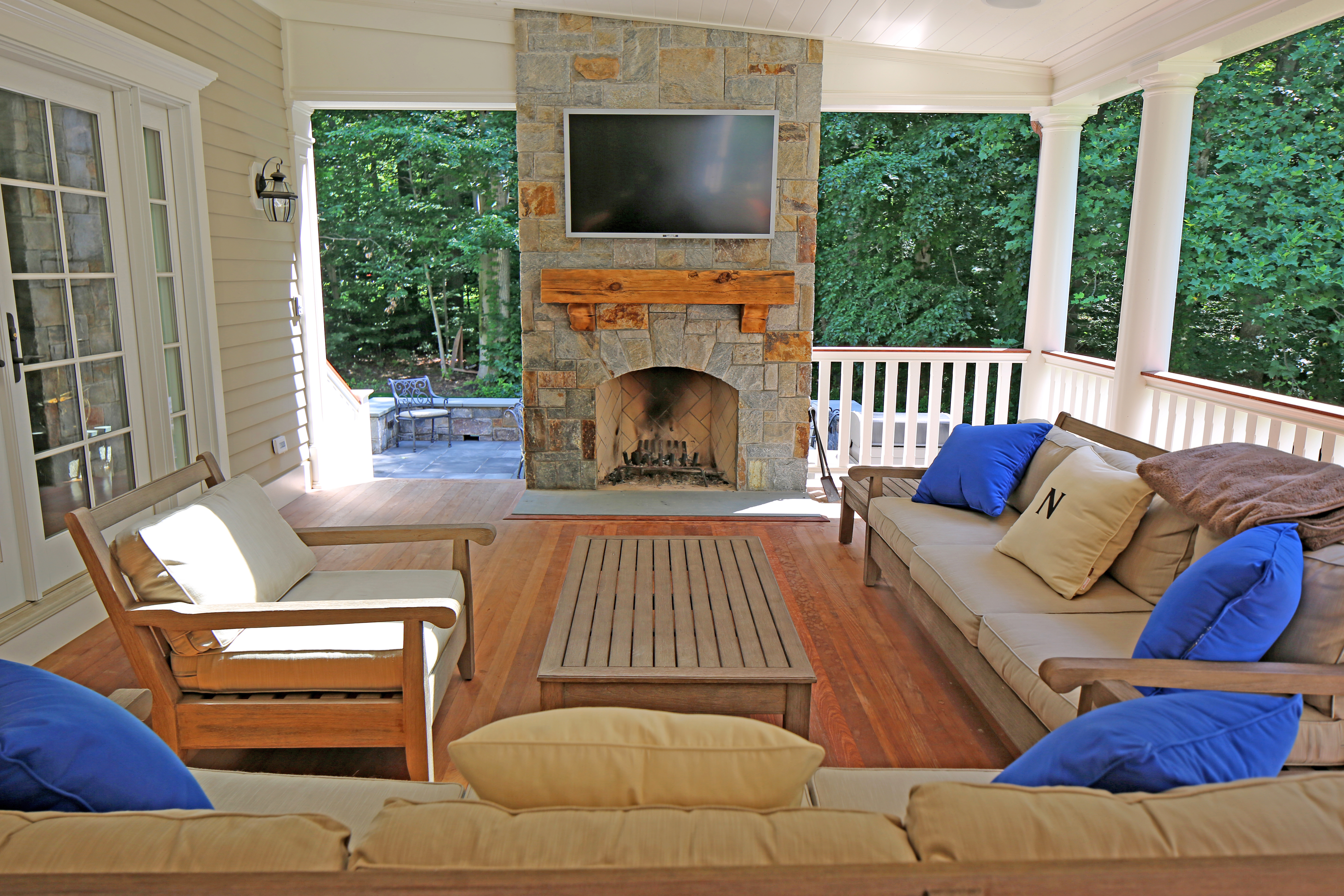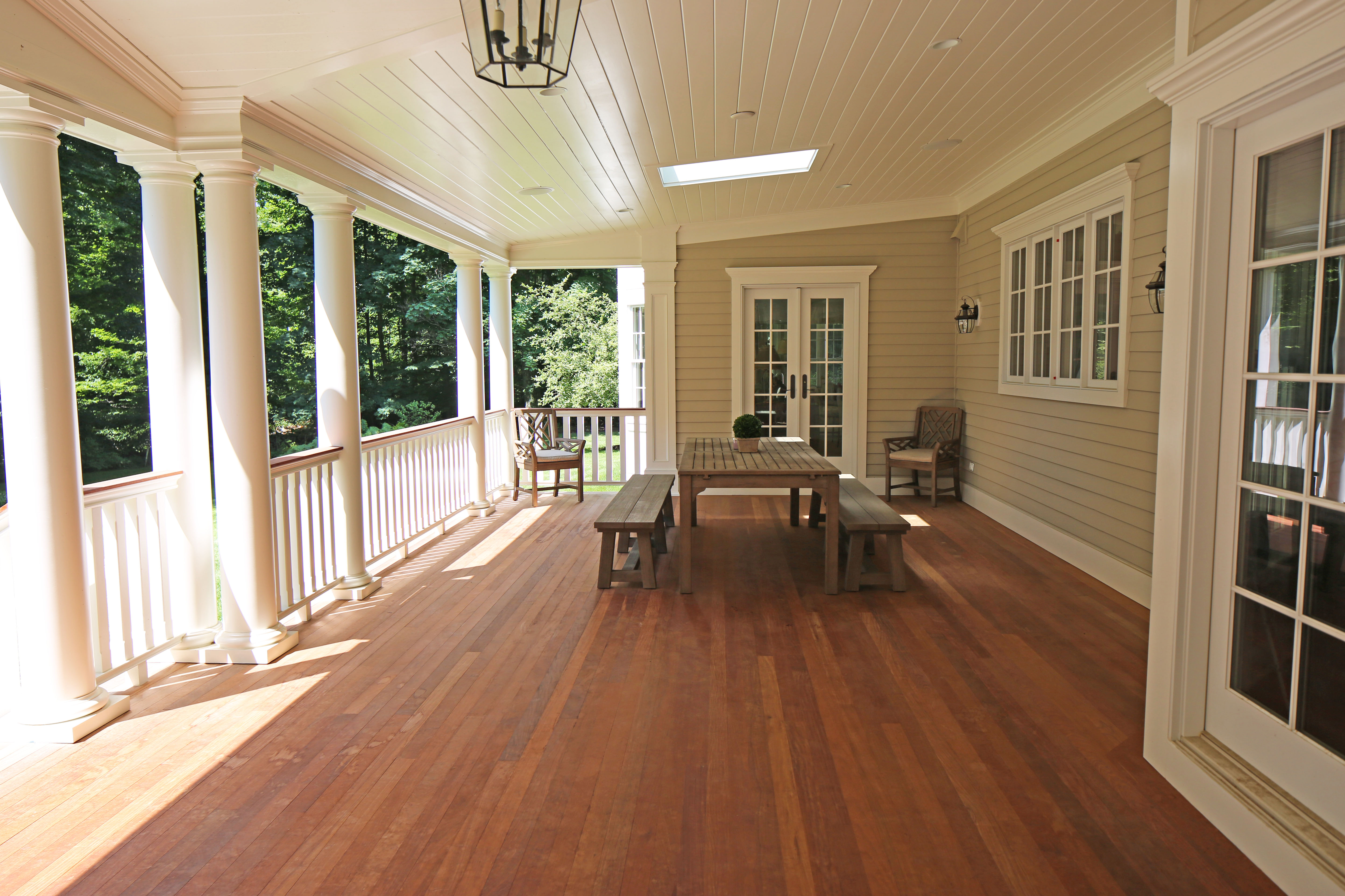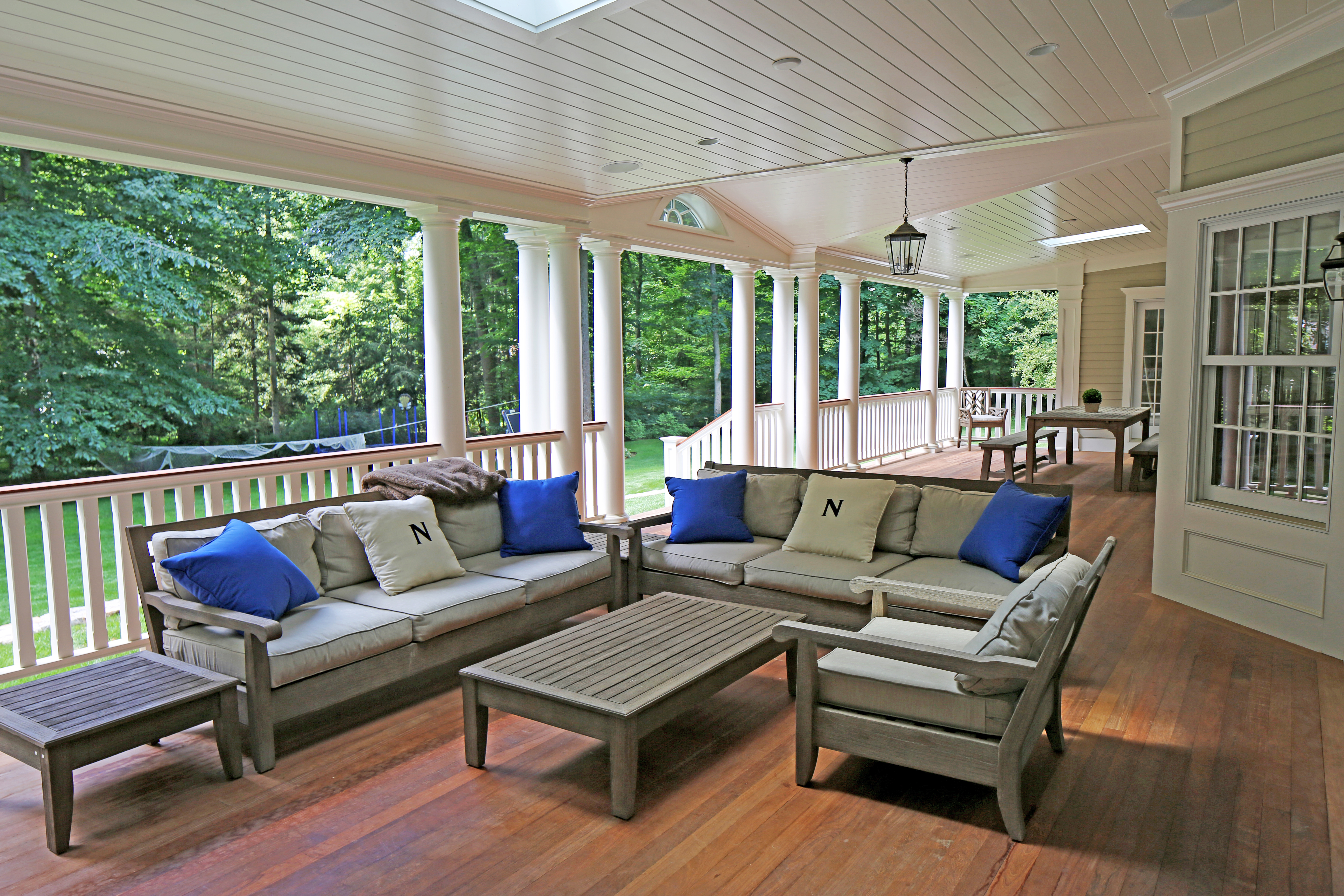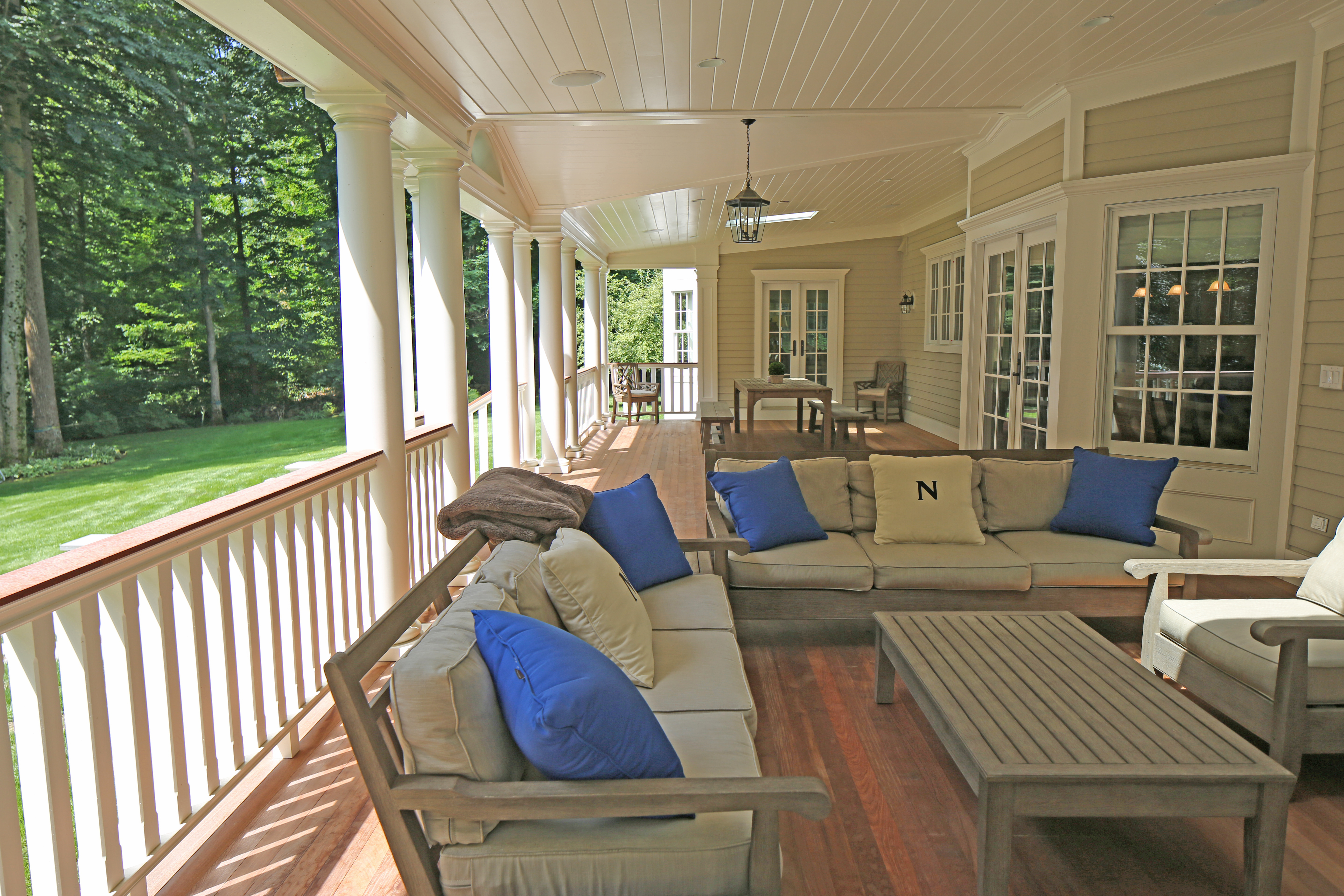 Working through the rough winter, digging down twice as far as required for the footings to reach undisturbed soil, and a lot of shoveling are just some of the challenges builder Steve Lanefsky of Executive Craftsman and architect Matt Dougherty faced during construction of this custom rear porch in Darien, CT. But challenges were made to be overcome as evidenced by the photos that follow of this spectacular outdoor oasis with custom amenities.
