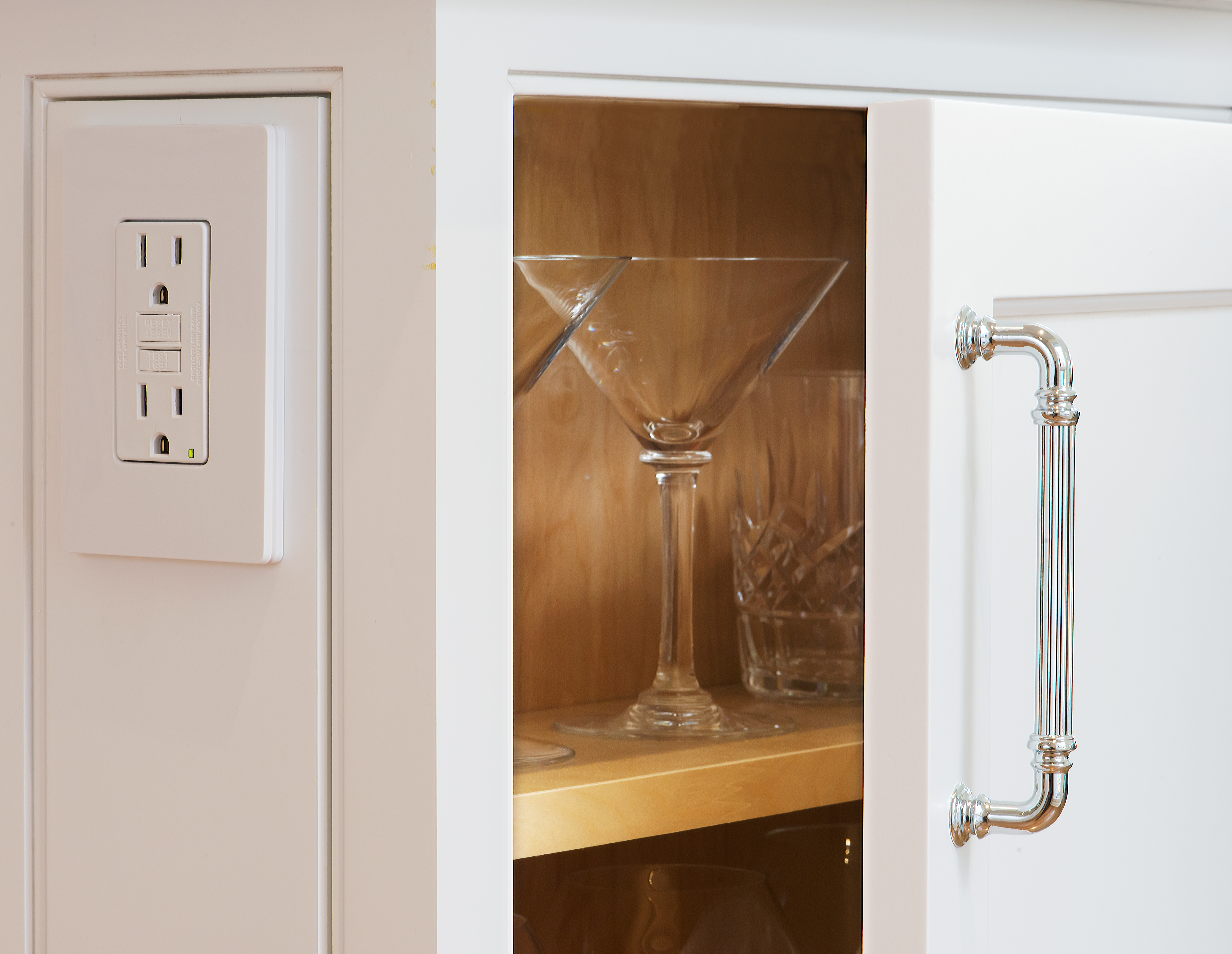 The homeowners chose cabinet hardware from the Chareau Collection by Top Knobs in a polished chrome finish.