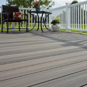 In the last few decades, beautiful decking products have been manufactured from plastic or from combining plastic and wood fibers. These products not only resist rot and insect damage, but their surfaces also resist fading, marring and staining from that occasional errant ketchup bottle. Durable and easy to maintain, composite & PVC decking can give the look of premium wood without warping or splintering. Ring’s End carries three selections of Fiberon synthetic decking and two selections of Trex composite decking.