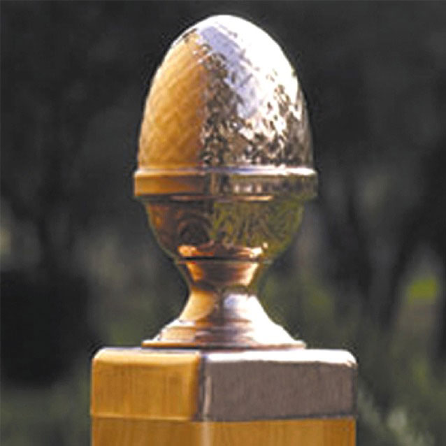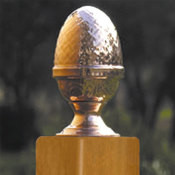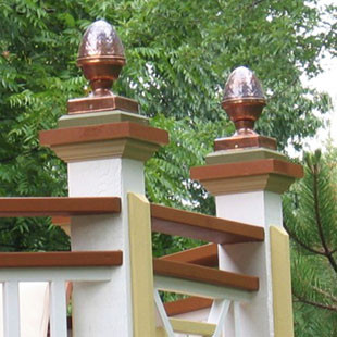 Copper caps and finials add an elegant touch to fence posts, gates, arbors, and railing newels. The distinctive color and sheen of copper provide visual appeal that only improves with time, as the copper takes on a rich green patina. Caps will fit 4” to 6” posts and are offered in slip-over or screw-in models.