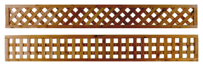 Lattice panels add a decorative touch to board fences, can stand alone as fencing, or can be used in building architectural features such as gazebos and pergolas. Ring’s End offers cedar and pressure-treated wood lattice panels in diagonal and square designs, cedar lattice top panels, and easy-maintenance vinyl lattice panels.