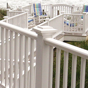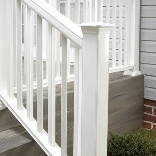 PVC can be cut, coped, milled, and drilled just like wood without the maintenance and weather-related problems wood railings can entail. This material is an excellent choice for detailed classic designs.