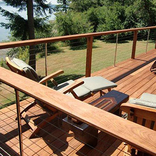 Stainless steel cables are a wonderful solution for enhancing a view and adding a contemporary look to a deck. They can be used in place of balusters with wood, synthetic, or metal handrails and bottom rails.