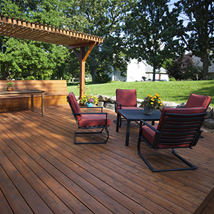 Where do we use exterior wood stains and finishes? Decks immediately come to mind… but what about wood siding, shingles and shakes? Fencing and railing? Gazebos and pergolas? Outdoor furniture made from wood? Doors and trim? Boat docks? Hot tub surrounds? Wooden play equipment? With all these possibilities, it’s no wonder that Ring’s End Paint Centers stock a wide variety of exterior wood stains and finishes, as well as the wood preparation products essential to your project’s ultimate success.