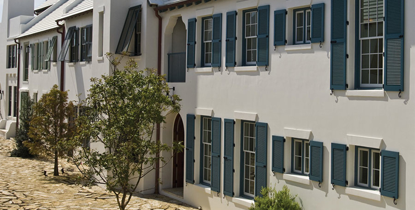 Developed in New Orleans, combination shutters have louvers on the top and raised panels on the bottom. They offer an uncommon exterior accent for almost all styles of home.