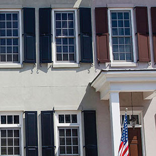 Characteristic of Southern Plantation architecture, raised panel shutters are well suited to colonial architecture. Their simple yet elegant design also goes nicely with homes featuring visually complex exteriors.