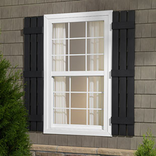Vinyl shutters are low maintenance and fade resistant. They are available in a wide variety of colors and styles.